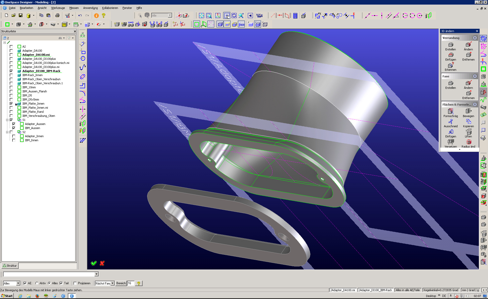 Abluftstutzen mit Freiformflächen von oval auf rund |